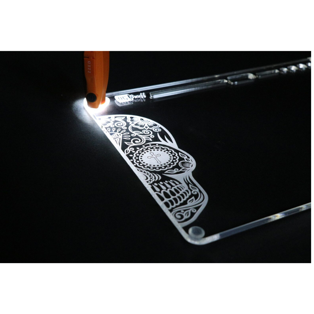 Hugely popular Day of the dead design seen on a limited run board, now moved over to or largest rolling tray, brought to life further by adding a torch light via the build in reflective pad!