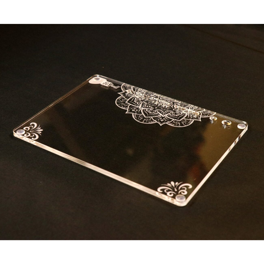Beautiful mandala design on the bottom of the board, brought to life further by adding a torch light via the build in reflective pad!